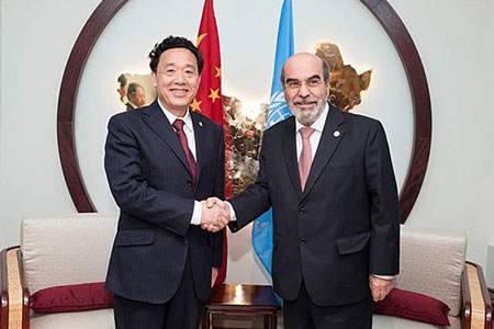 屈冬玉副部长(左)率团访问FAO总部