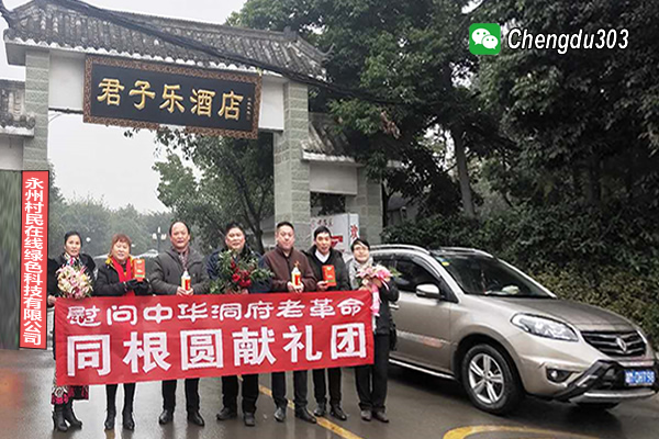 图三:2018年哈尔滨申氏酒业与村民在线率先到成都慰问老革命
