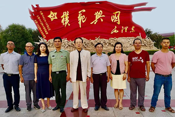 图七:刘建吉与红色旅游团在中央红军长征出发纪念馆前