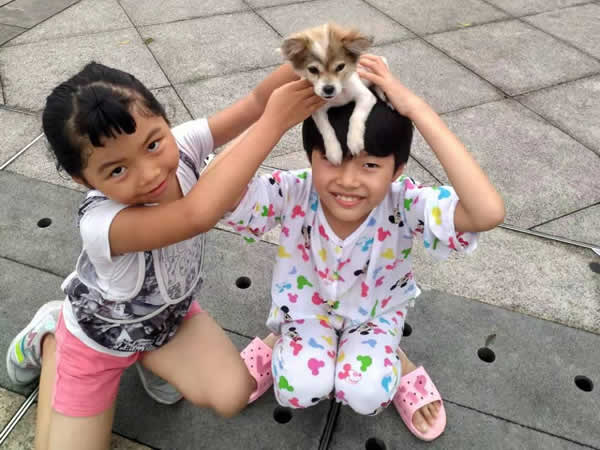 图五:小朋友与爱国犬“神仙妹妹”玩耍