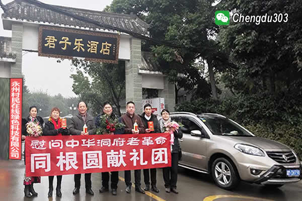 图三:永州村民在线公司组织的献礼团千里迢迢来成都慰问老革命 (左起:陈辉、张宝英、甄仕荣、李国林、申首阳、唐才亮、唐良闻) 2019年12月18日是雷锋同志诞辰79周年暨改革开放41周年纪念日,湖南永州52位爱国人士联名(少部分参与了全国首次上报)向中央上报川渝失散老革命保密团体,同时庆祝中国首个国产航母交付海军。