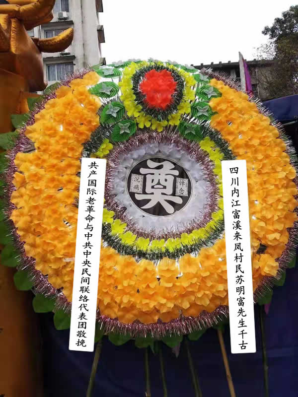 12月25日下午2点30分许,共产国际老革命与中共中央民间联络代表团(简称:共中团)副团长陈辉、发言人唐良闻、特邀代表陈宗财三位成员赴四川省内江市市中区黄泥湾,祭奠共中团成员苏全芳女士之父苏明富村民,并代表共中团送了花圈,向苏明富遗孀及家属表示了慰问。
