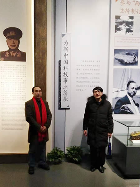 图五:唐良闻(左)与杨宗强(右)在聂帅与钱学森照片处