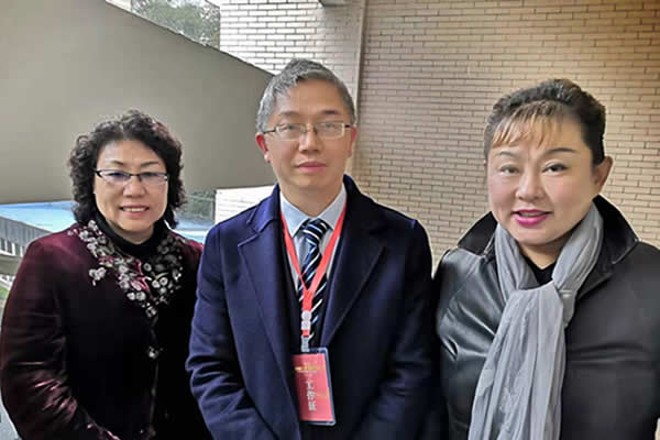 图17:重庆双福育才中学党总支书记、副校长邓玉洪(中)与常务副主编叶晓媚(左)、副主编彭蓉(右)合影