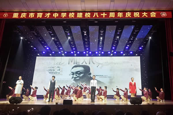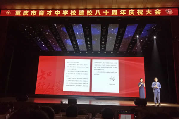 12月31日上午,“庆祝重庆市育才中学建校80周年大会”在3000余名与会者的期待和欢呼声中,徐徐地拉开了帷幕。 80年风云变幻,一代代育才人培养出来的一大批育才学子的代表们来了,全国各地研究陶行知的陶子代表们来了,育才中学的国内外友好学校的代表们来了,陶行知先生的亲属代表们来了,重庆市各界的代表们来了,日本、意大利等驻重庆总领馆的外国友人也来了……他们与育才中学的师生欢聚一堂,共庆由陶行知先生创办的重庆育才中学80华诞。 在庆祝大会上,主持人宣读了重庆育才杰出校友、国务院原总理、全国人大常委会原委员长李鹏同志生前发来的贺信以及李鹏同志的女儿、中国陶行知基金会名誉会长李小琳女士发来的贺电。中央相关部委、重庆市有关部门、社会知名人士也发来了贺信,正在海外就读的育才校友代表们还通过视频连线,表达了他们海外学子对母校80华诞的美好祝福。 80载时光长河。搭乘着时光列车的育才人砥砺前行的深情讲述、与大屏幕上宏大视角的图文呈现、和育才师生激情四射的文艺演出,交相辉映、美伦美奂地娓娓道来。在展现陶行知先生创办育才学校初期、那艰难而辉煌办学历程的基础上,着重展示出了新时代育才中学所取得的多方面杰出成就,并描绘出育才中学未来发展的美好愿景。 上午11时许,重庆市育才中学校长张和松发表了热情洋溢的致辞。他在致辞中既向大家回顾了育才中学80年办学中的艰难历程,又介绍了新时代育才中学取得的辉煌成就:1963年,学校被评为重庆教育战线上唯一的百面红旗单位;1978年,学校被确定为第一所省属中学。作为全国优秀的陶行知实验学校、全国百强艺术示范学校、重庆市教育教学质量先进单位以及清华、北大等高校的生源基地学校,现己发展成为“一校五区”、教职工逾千、学生上万的教育集团。 如此等等,从中感受到育才人在传承、践行和发展着陶行知教育思想,履行着对时代、对国家的责任与担当的我,怎能不感慨万千:校庆盛典气恢宏,重庆育才腾巨龙。李绽桃开辉寰宇,凤起凰舞跃华中。八秩师陶鹏鸿举,九心归一兴国梦。行知思想教学做,民族精神育英雄。