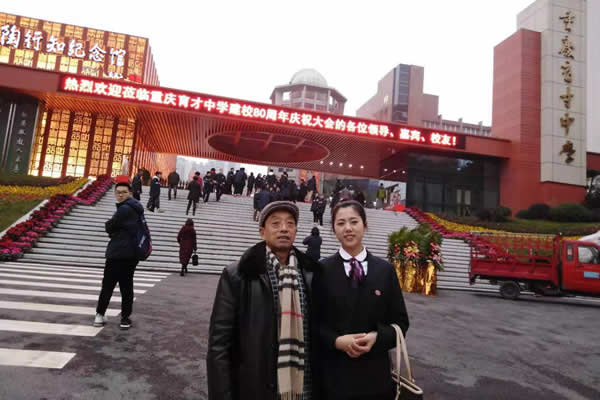 谈起我们的这次重庆之行,还得从《重庆陶研文史》说起。 早在两三年前,承蒙罗春秀、徐妮、贾振婷等这本杂志的几任编辑朋友们的厚爱,曾发表了我写的多篇陶研类文章。其中,撰写陶行知的高足、人民教育家《汪达之评传》的有关章节,至今还在“连载”之中。 当从这本杂志中获悉了育才中学正在筹备建校80周年庆典的消息之后,我便拟了一首贺诗《热烈庆祝重庆市育才中学建校八十周年》:浴火重生八十年,凤凰涅槃创空前。陶公建校时艰克,童稚启蒙烽火连。踯躅街头募捐助,盘桓古寺执教鞭。行知兴教民生养,赤子之心耀碧天。 为表贺诚之意,我还将这首诗请了青年书法家蔡刚枝老师写成了书法作品,连同我出版过的几本书《汪达之教育文集》(编著)《刘友开:语文教学新探索——一位“草根教师”的逐梦之旅》(论集)《一群小好汉群英谱——纪念中国人民抗日战争胜利70周年暨新安旅行团建团80周年》(诗集),寄给了罗春秀老师转育才中学校史馆惠存。当时,她己调到“校庆办”负责筹备校庆事宜。 令我喜出望外的是,罗春秀老师经请示校领导,竟向我和我的夫人发来了参会邀请。非常善解人意的罗春秀老师还告诉我们,她已为我们预订好了往返重庆的飞机票、落实了下榻的宾馆和由年轻教师杨秋兰老师负责接待我们。 时隔不久,我也收到了正在负责编写《重庆陶研文史》的贾振婷老师给我寄来《庆祝重庆育才中学建校80周年》的《重庆陶研文史》“特刊”,还将这首贺诗的书法作品彩印在这本精美“特刊”的扉页之上。未过几日,我就又收到了罗春秀老师寄来的参会《邀请书》。 如此等等,由敬意、感激和期待之情顿生欣喜的我,怎能不溢于言表:育才庆典八十年,预期盛况会空前。至谢相邀去共享,先睹为快幸占先。天下陶子是一家,行知研究润心甜。尚未成行先有情,梦中早己飞渝地。