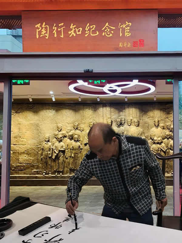 12月31日,在育才中学举行建校80周年校庆之际,伟大的人民教育家陶行知先生纪念馆正式开馆。这是为庆祝重庆市育才中学建校80周年、纪念陶行知先生为实现教育救国而创办育才的初心和理想、弘扬独具特色的“行知文化”、传承陶行知老校长的教育理念和教育精神,育才中学在重庆市九龙坡区的支持下,新建起来的“陶行知纪念馆”。 该馆为矩型3层的现代建筑,占地面积近1950平方米,馆内面积约1750平方米,包含“两馆十三厅”。“两馆”兼含陶行知纪念馆和育才中学校史馆;“十三厅”为两馆展厅数量之和,共设有序厅、A厅、尾厅等13个展厅。今天开馆的重庆育才中学陶行知纪念馆,是继南京、上海、安徽、重庆和杭州等全国五大陶馆之后,全国唯一的一处由中学独立创办的“陶行知纪念馆”。 育才中学校长张和松在致辞中表示:陶馆以线性时间为主轴,以精神脉络为经纬,通过一明一暗两条线索编织出陶行知的思想图鉴。一条明线,是用陶行知教育救国的生平事迹,来彰显其“爱满天下”的人格魅力;一条暗线,则是对陶行知生活教育理论萌生发展过程的介绍,来彰显其教育思想的历史价值和现实意义。建成后的“陶行知纪念馆”,是行知精神和育才风骨的凝炼。 我们是在开馆当日的下午,随参观的人流入馆参观的。展览内容分置于三层。 在一楼,我们看到了还原后的陶行知青少年时期生活成长和学习的历程。这一时期的陶行知受到徽学与西方教育思想的浸润,逐步奠定了他中西合璧的理论基础,并初步形成了面向生活、面向社会的教育观念。 在二楼,我们看到了展示陶行知教育思想和育才中学的前世今生。这是纪念馆最具匠心的设计:运用“两馆合一”的特殊架构,通过巧妙设置路径线,达到两馆“合而有别,分而不离”的艺术效果。它既可让前来的参观者在二者中进行选择或观其全貌。 在三楼,我们不仅从大量翔实的文字、图片、实物、主题雕塑、立体造型、影像史料等资料中,多角度地看到了再现陶行知一生的斗争业绩,而且也全方位地看到了育才中学80年的峥嵘岁月,还仿佛使我们深层次地感受到了流淌在陶行知与一代代育才人身上的血脉与情怀。这是学陶师陶践陶的思想平台。 在育才中学“陶行知纪念馆”,应工作人员和参观者的邀请,我还为他们书写了学陶师陶的字幅。参观育才中学“陶行知纪念馆”之后,校庆组委会还安排了我们部分参会者,驱车专程到座落在合川县凤凰山上古圣寺的育才学校原址及那里的“陶行知先生纪念馆”参观考察。 如此等等,作为陶研路上后来者的我,在参观了如此物博与神丰俱佳的陶行知纪念馆之后,怎能不放声高歌:陶馆天门向阳开,精神长河通四海。行知育才珠璧联,高歌猛进新时代。喜看桃李满天下,肩负使命壮烈怀。继往开来育新人,任重道远后来者。