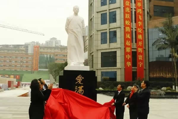 80年前,伟大的人民教育家陶行知先生怀着教育救国的远大理想,在重庆合川古圣寺创办了育才学校。如今,在育才学校80岁生日之际,座落在九龙坡区谢家湾育才中学本部校门口的“陶行知纪念馆”开馆了、陶行知先生的汉白玉雕塑像揭幕了、行知广场的文化园建成了。它们都是重庆育才学校精神灵魂的体现。 12月30日上午,在重庆市育才中学的行知广场举行了陶行知先生汉白玉雕塑像揭幕仪式。来自北京、南京、上海、辽宁、安徽、陕西、广西等省市以及美国、韩国的嘉宾代表200余人,共同为陶行知先生汉白玉雕塑像,举行了隆重的揭幕仪式。 在揭幕仪式上,中国陶行知研究会常务副会长兼秘书长吕德雄代表朱小蔓会长为重庆育才中学80周年校庆暨陶行知先生汉白玉雕塑像落成致贺信。同时,他也希望重庆育中学在学校特色文化系列的打造,行知办学精神的传承,在新时代教育改革浪潮中肩负新使命,实现新作为。 重庆市育才中学校长张和松在揭幕仪式上表示:80年的育才人正是继承陶行知先生宏志,奔涌向前,努力将育才学子培养成自立立人、自达达人、自觉觉人的真人,努力把育才中学办成国内一流、国际知名的创造型学校。 陶行知孙女、中国陶行知研究会常务理事、中陶会行知雕塑文化研究专委会总顾问陶铮,在揭幕仪式上代表陶氏家属讲话。她高度赞扬重庆市育才中学继承和发展陶行知教育思想,始终走在时代的前列。 雕塑家博杰发表了陶行知先生汉白玉雕塑像作品的创作感言。他指出:他们雕刻这块洁白无瑕的玉石,创作再创作,让它绽放出灵魂,使其成为永恒的精神丰碑。这就是他们雕塑者的使命。 如此等等,在感受到了历史与现实交融、艺术与灵魂对话之后的我,怎能不心潮澎湃:万世师表陶行知,生活教育举义旗。创办学校育英才,教育救国树宏志。自觉接受党领导,奋不顾身勇创奇。功高盖世泽天下,鞠躬尽瘁英雄气。