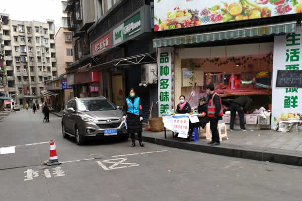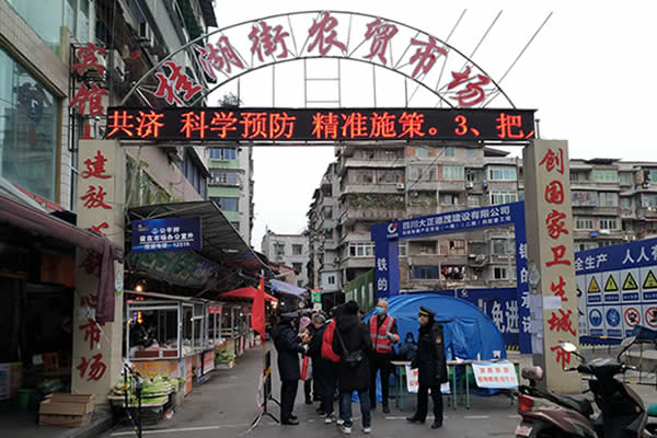 图五:内江市桂湖街农贸市场严阵以待检查出入人员